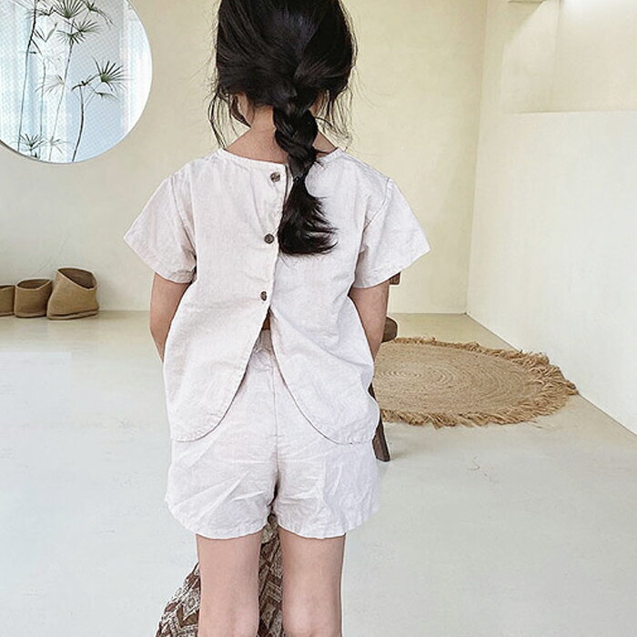 ■サイズ s(80):総丈30cm 身幅31cm 袖丈13cm / ウエスト19cm 総丈21cm 股上 股下 ---------------------------------------------- m(90):総丈33cm 身幅32cm 袖丈14cm / ウエスト19cm 総丈22cm 股上 股下 ---------------------------------------------- l(100):総丈35cm 身幅33cm 袖丈16cm / ウエスト20cm 総丈23cm 股上 股下 ---------------------------------------------- xl(110):総丈40cm 身幅36cm 袖丈18cm / ウエスト21cm 総丈24cm 股上 股下 ---------------------------------------------- xxl(120):総丈42cm 身幅37cm 袖丈19cm ウエスト22cm 総丈25cm 股上 股下 ■素材 cotton100% ■色 アイボリー/カーキ ■その他商品説明 背中ボタンのシンプルセットアップ さらっとした涼しそうな生地で、背中にボタンが付いています。