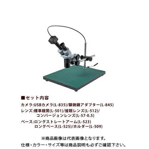 【メーカー名】 ●ホーザン(株) 【特長】 ●USBカメラ付き固定倍率式顕微鏡 【セット用品】 ●L-835 USBカメラ ●L-845 顕微鏡アダプター ●L-501 標準鏡筒 ●L-512 接眼レンズ ●L-57-0.5 コンバージョンレンズ ●L-509 ホルダー ●L-523 ロングストレートアーム ●L-525 ロングベース 【仕様】 《カメラを使用した場合》 ●倍率:11〜165X ※24インチワイドモニター使用時、解像度1920×1080設定時の倍率 ●視野:15×11〜4.2×3.2mm ●作動距離:145〜90mm ●撮像素子:1/2.5" CMOSイメージセンサ ●出力コネクター:USB2.0 ●有効画素数(最大):2592×1944(500万画素) ●保存画素数(最大): 静止画 2592×1944(500万画素) 動画 1280×960(120万画素) ●フレームレート:最大30fps 但し500万画素使用時のみ10fps ●動作環境:Windows 10 / 8 / 7 / XP ※日本マイクロソフト社のサポートが終了したOSでご利用中に問題が発生した場合の保障・サポート対応は行っておりません。