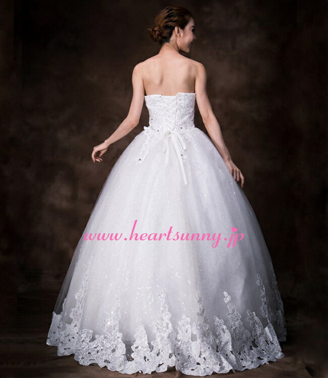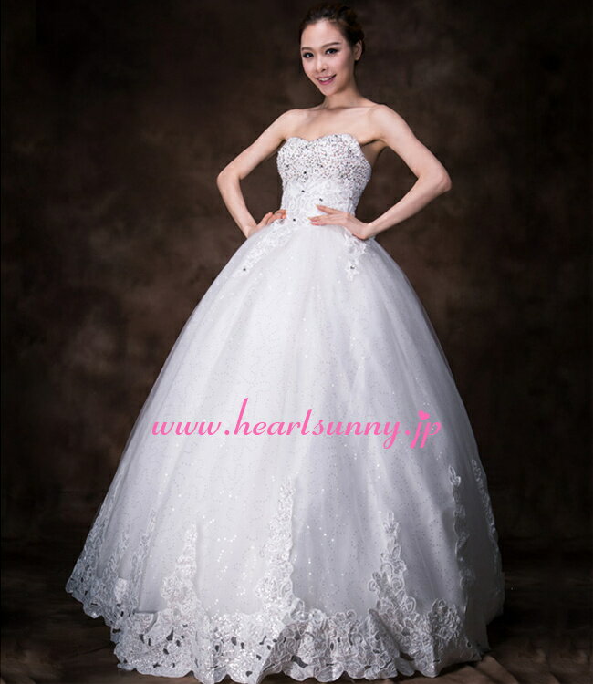 ウェディングドレス Aライン☆E088☆ビーズ飾りハートネックビスチェ 花柄レース&スパンコール 編み上げ☆HeartSunny【RCP】サイズオーダーメイド/結婚式/披露宴/二次会/大きい/小さい/ロングウエディングドレス/パーティードレス/ブライダル/花嫁/格安/激安