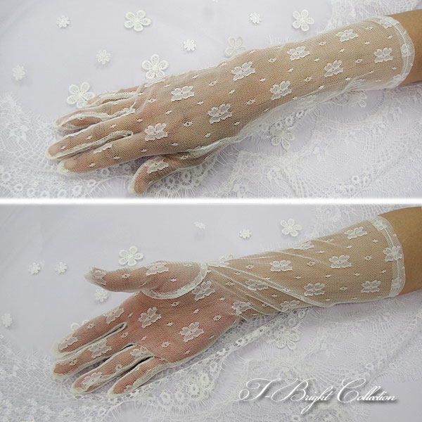 【ラスト1点】ウエディング ロング グローブ オフホワイト 花柄レースが柔らかなの手袋 ブライダル 小物 上品 綺麗 花嫁 結婚式 披露宴 二次会 ウェディングドレスに合わせて(gl_166) 【メール便発送】