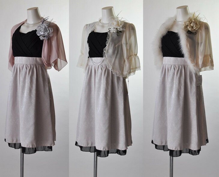 ピンクベージュボレロと黒ボレロはシフォン素材。