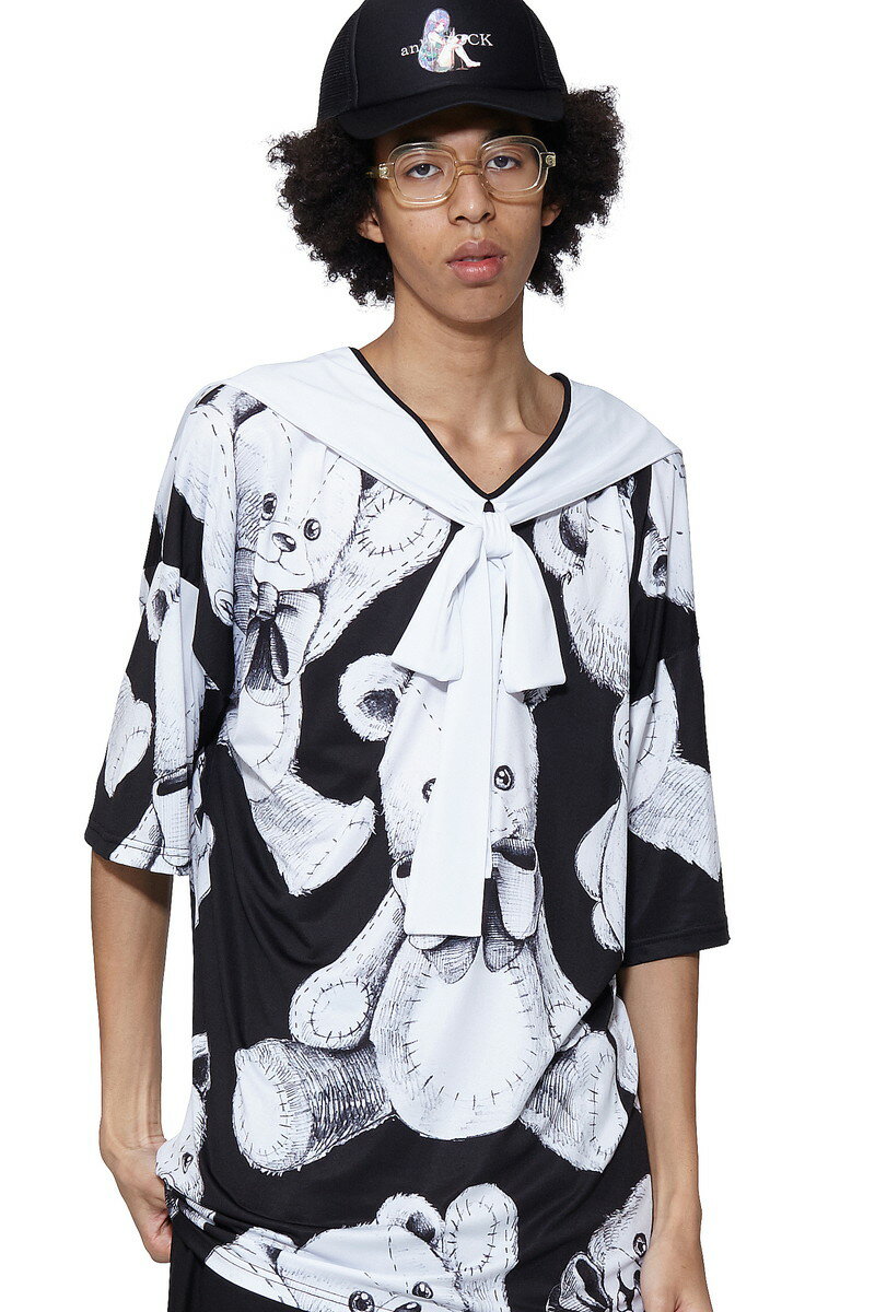 キャップ >シューズ >ankoROCKビッグテディベアセーラーTシャツ -メガビッグ-パイピングラインなどを排除した無機質なモード感漂うセーラーデザイン×定番の半袖Tシャツ。